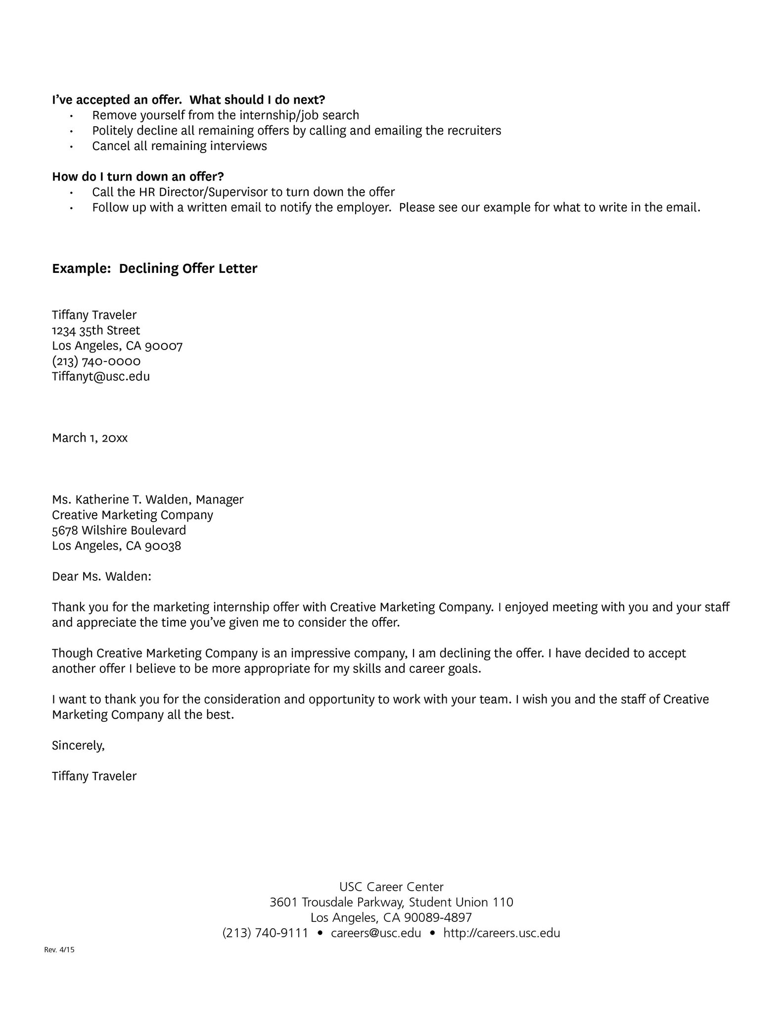 40 Professional Job Offer Acceptance Letter Email Templates á Templatelab from templatelab.com Unfortunately, i am unable to accept this offer. Ask yourself if there is anything that the employer could offer you that may make you reconsider working with them. I greatly appreciate you taking the time to speak with me and answer my questions. Think carefully about these possibilities before you contact the company. If the offer's details (such as the start date, salary, deadline to accept, etc) are included in the offer email, then read through all information thoroughly. It's okay to decline the job in an email, but a phone call is better. For example, you might say, thank you very much for offering me a position. contact name, thank you so much for your offer to intern with company name.